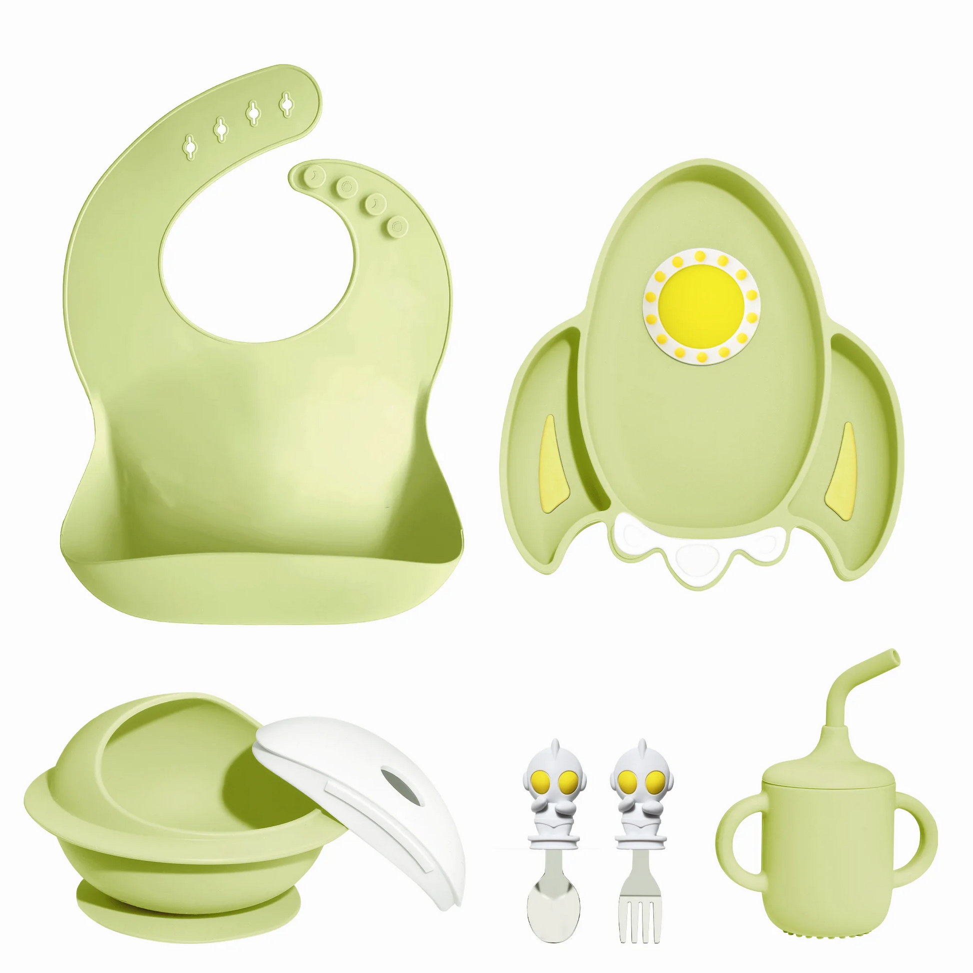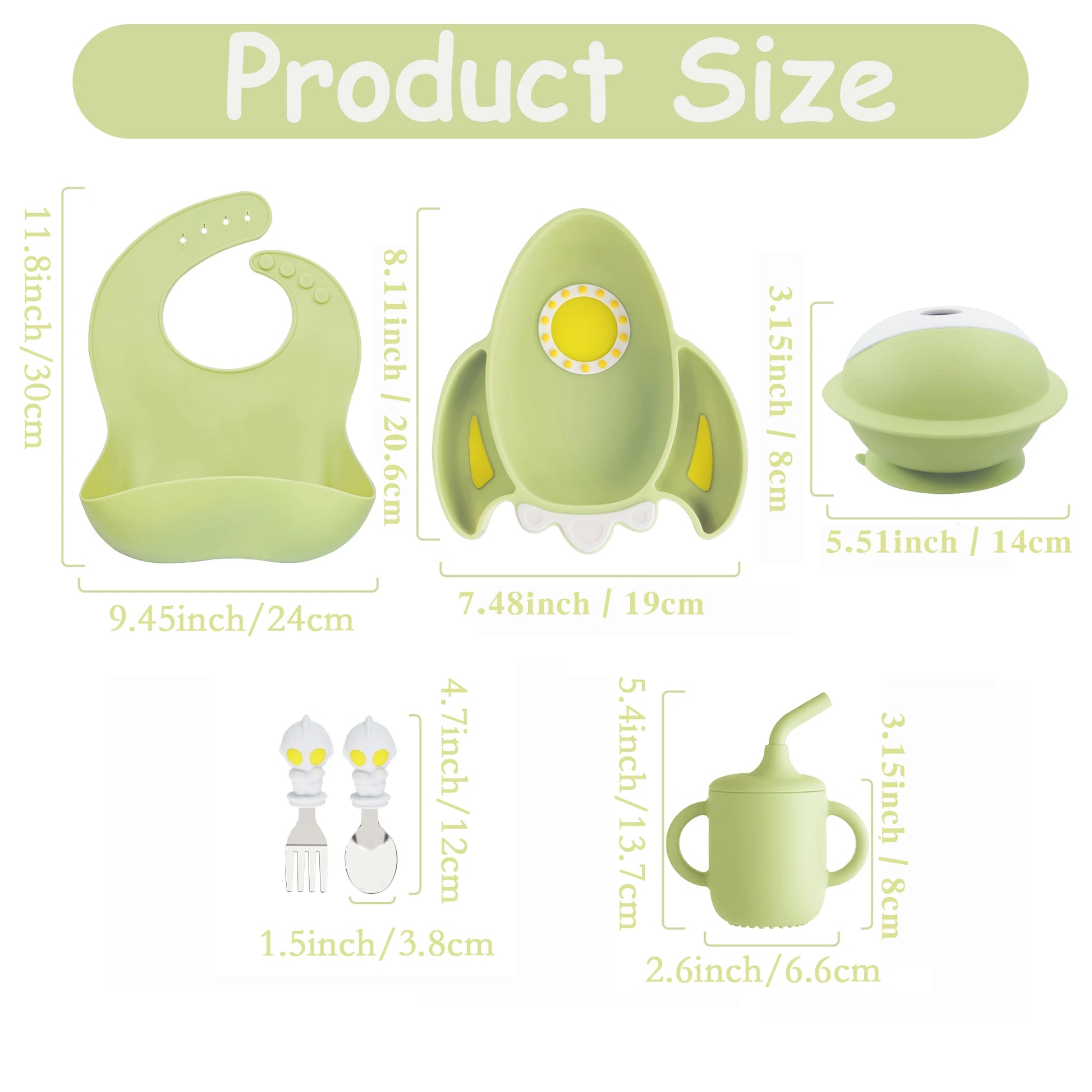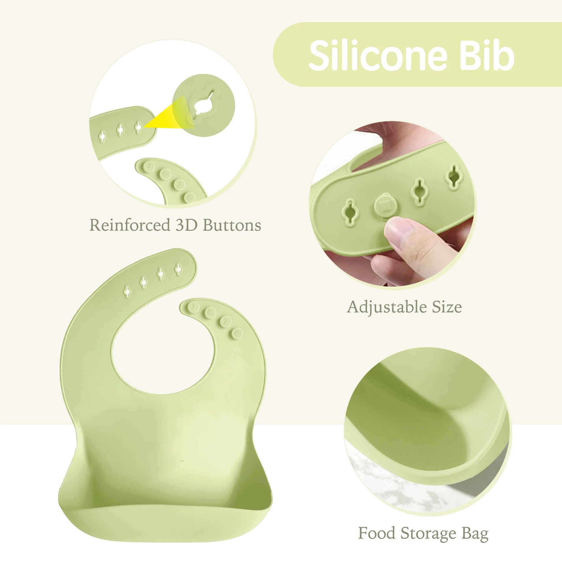 6 PCS Baby Feeding Set Baby Led Weaning Supplies with Suction Plates and Bowls Set Toddler feeding Utensils with Spoons Bibs