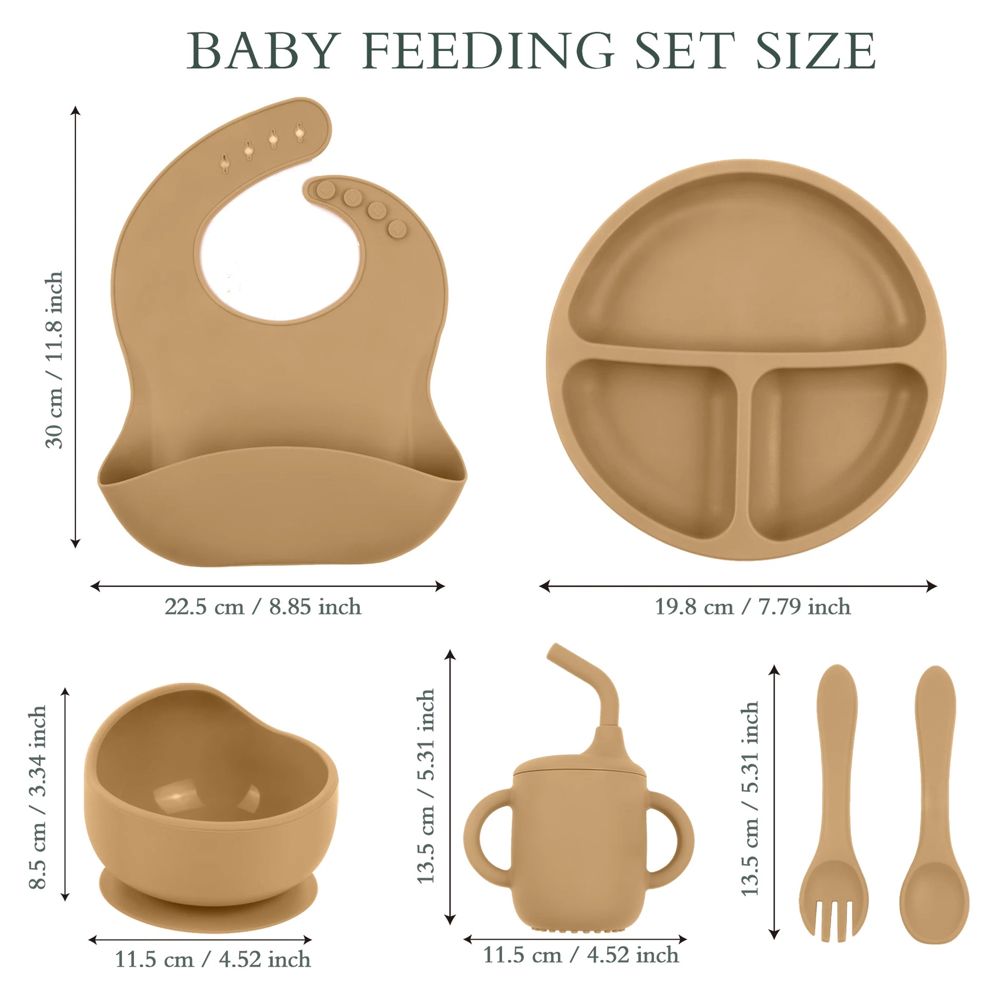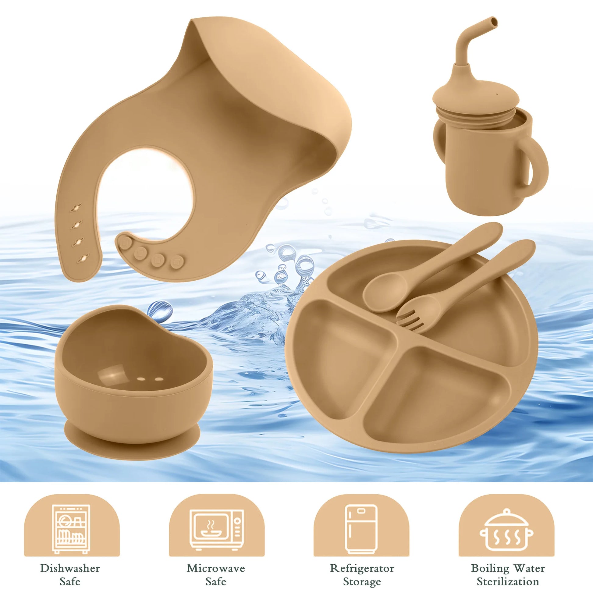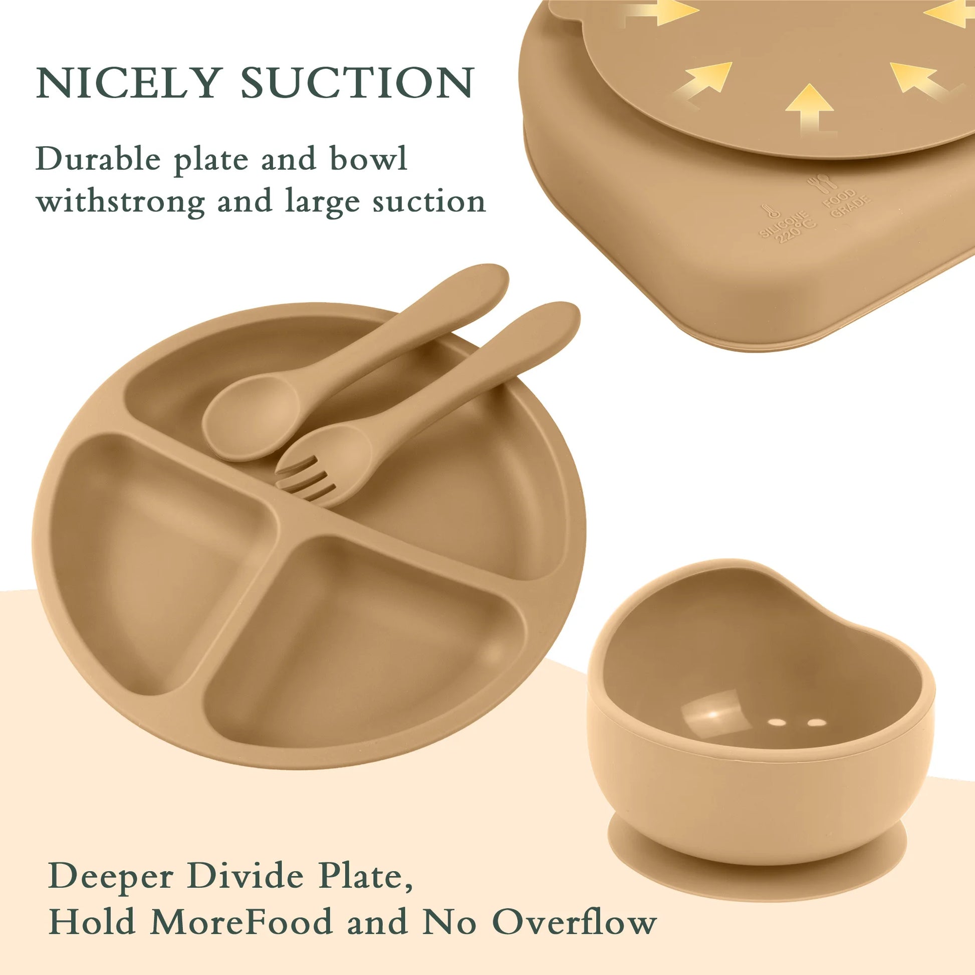 6 PCS Silicone Baby Feeding Set Baby Led Weaning Supplies with Suction Bowl Divided Plate Toddler Self Feeding Dish Set
