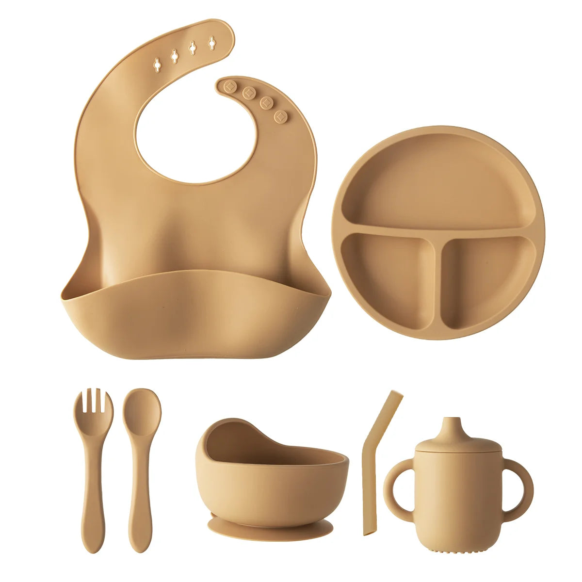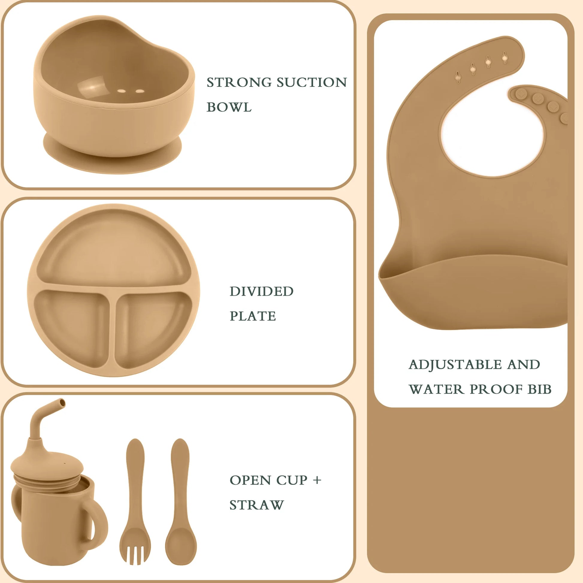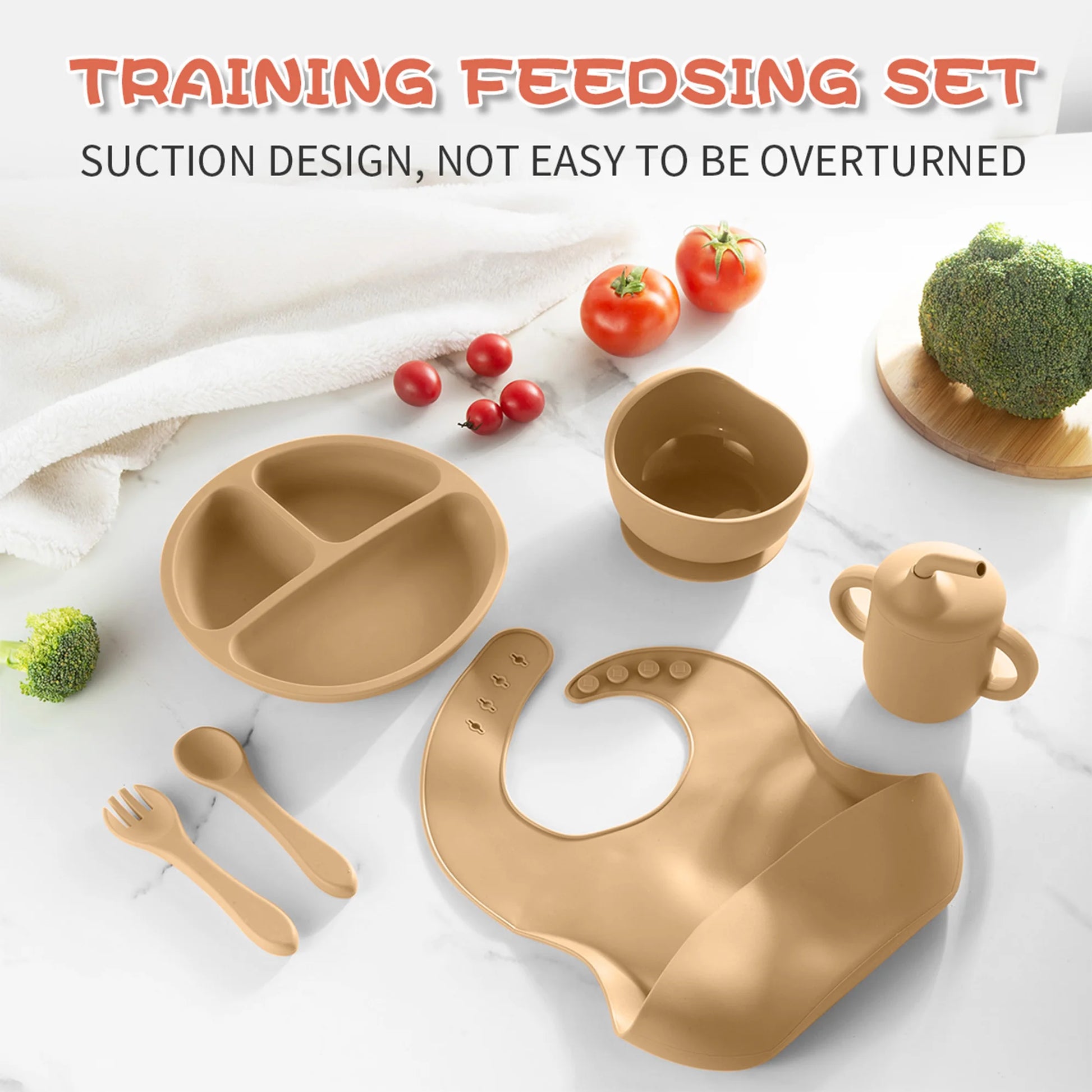 6 PCS Silicone Baby Feeding Set Baby Led Weaning Supplies with Suction Bowl Divided Plate Toddler Self Feeding Dish Set